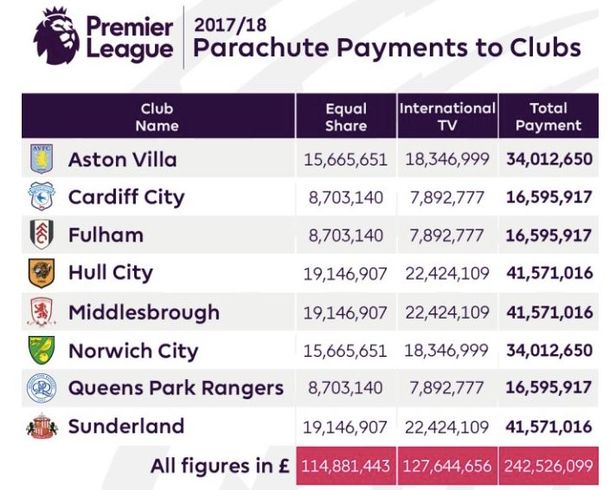 The Premier League issues ‘Parachute Payments‘ to releagted clubs which allocates a percentage of their broadcasting income over a three year period that progressively decreases from 55% to 20%. However, since the finanical gap between the top and second division is increasing exponentially, more relegated clubs are now even struggling to remain in the second division. Huddersfield was relegated from the Prem in 2018/19 and now they are 20th in the league; just two places above relegation to the third division.
