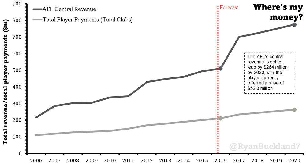 In an economy, this makes complete sense. There is a huge demand for entertainment which has been provided by the AFL. As a private cooperation, they’ve pooled profits and reinvested in various areas, importantly in youth leagues, in the new AFLW league and back to the players pockets. The people realistically you bring in all the money in the first place.