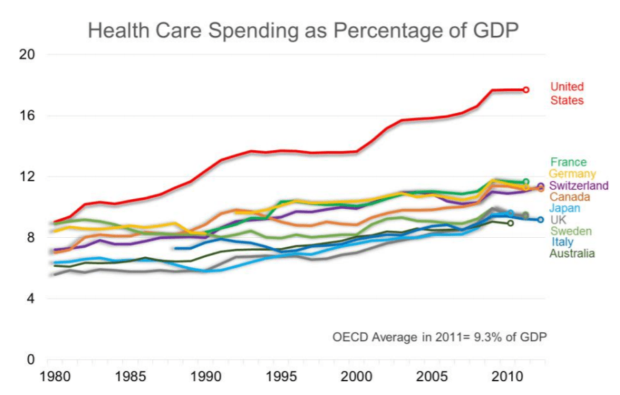 The rise of healthcare costs in the US is still a current economic issue, since several decades ago. With 90% of spending on healthcare costs, it is a large factor behind the countries’ expenditure and economic activity from businesses. This influences the decision and resource allocation of the economy. Is this a potential threat to the whole country?