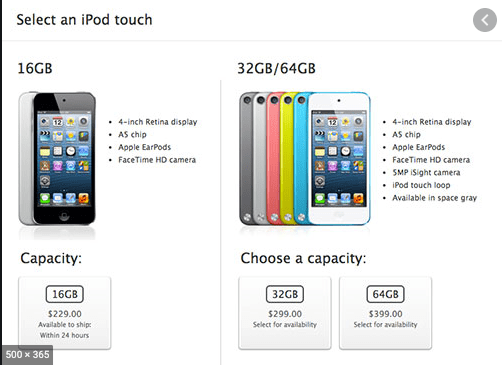 Decoys explain why Apple often sells each gadget in a pricing series, such as the new iPod Touch’s $229, $299, and $399 price points for different storage capacities. You may gladly spend $229 to get a hot media player, thinking it’s a deal compared with the highest-priced version and not blink that you could instead buy an iPhone 4 at the lower price of $199 with more features.