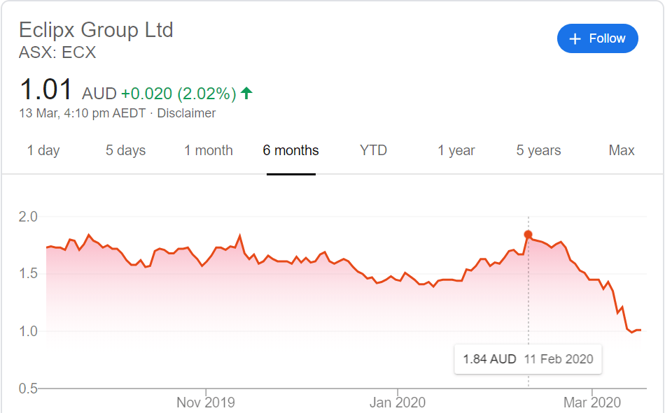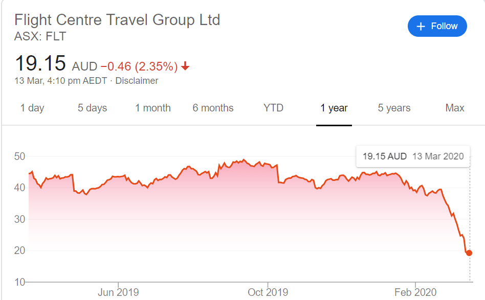 All these behaviors of our citizens caused our Shareholders and Stakeholder to panic. They started mass selling their shares looking to maximize their profits, or minimize their losses. This caused the share prices to fall dramatically. How? When consumers buy shares consistently, the price constantly goes up. For example, when buying a share, the next possible bid may be 1.20, but the next person who wants to buy after you would have a next possible bid of 1.25. This is because there is less supply – No one is willing to sell- but there is alot of demand – Many stakeholders want to buy-. At this current point in time, it’s the opposite. Alot of people are selling, making the supply go higher, and less and less people are willing to buy. Some company shares have crashed almost 50% like Flight Center (FLT) and Eclipse Group (ECX).