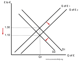 Here the demand for GBP has decreases while supply has increased resulting in a decrease in the exchange rate of GBP to EUR.