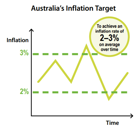 Inflation is the sustained increase in the general or average price level of goods and services over time. As inflation increases, the purchasing power, which is the amount of goods and services that can be purchased with one unit of currency, decreases; and vice versa. The RBA uses inflation targeting, to guide the decisions it makes regarding monetary policy. In other words, the RBA has flexible range in between which they aim to keep inflation levels. This range is 2-3% , where inflation can temporarily be below 2% or above 3% but should be 2-3% on average.